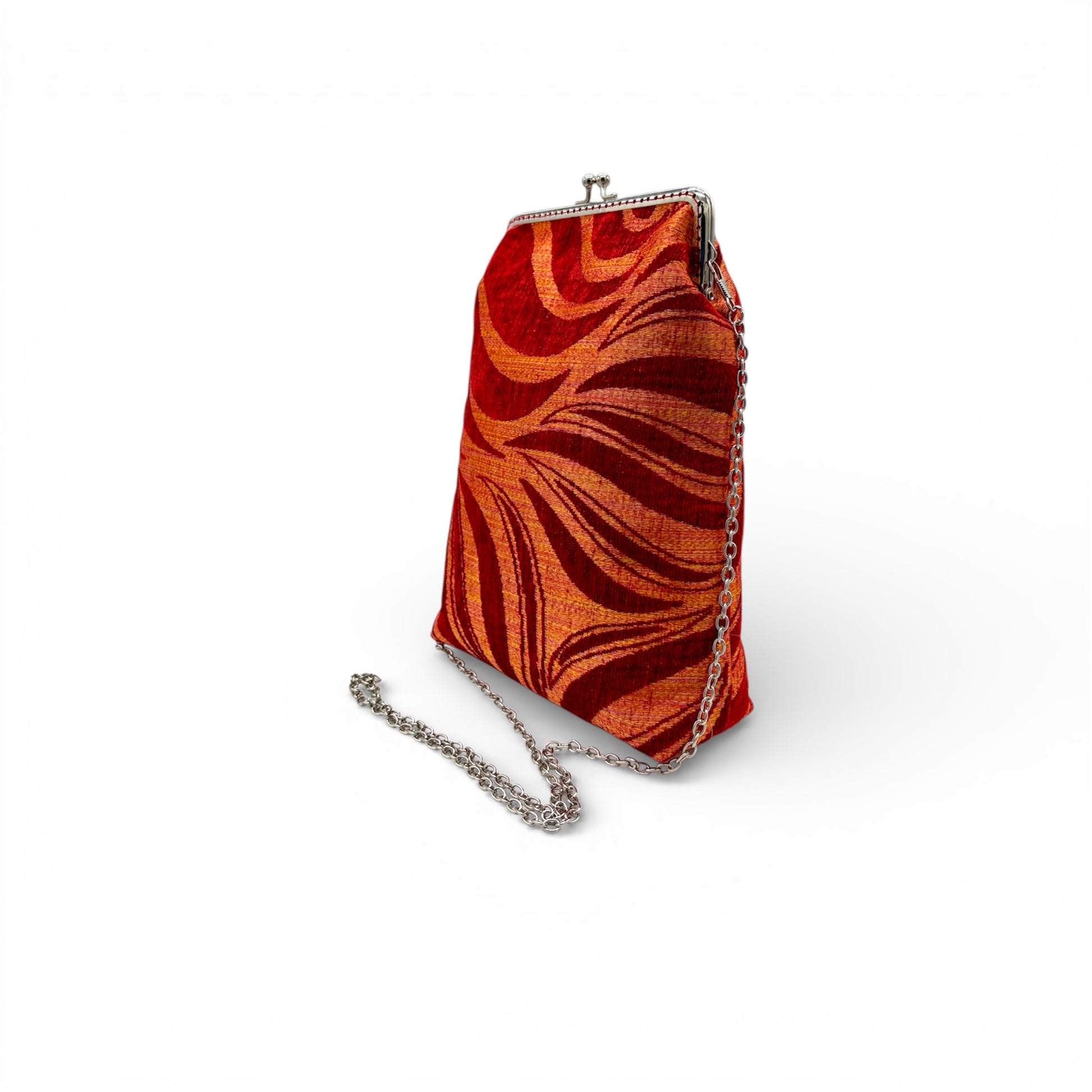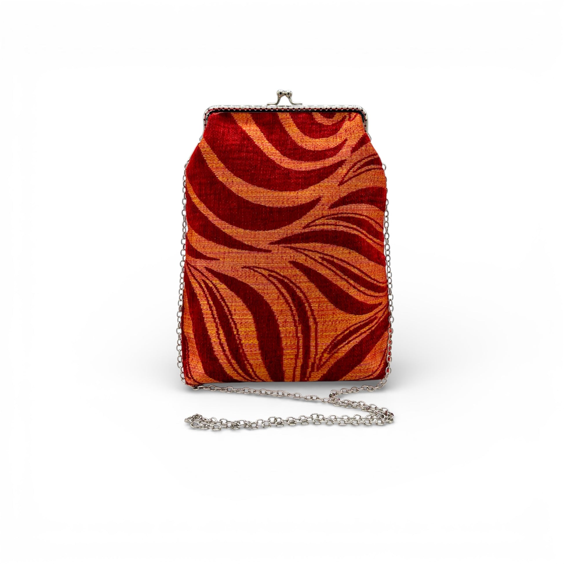 Lylou - Madame clic clac dal design moderno e distintivo. Caratterizzata da una chiusura a scatto elegante e funzionale, combina stile e praticità. Compatta ma capiente, è perfetta per portare con sé gli oggetti essenziali con un tocco di classe. Ideale per outfit quotidiani o serali, aggiunge un elemento di carattere a ogni look. Realizzata in velluto e shantung cangiante, dotata di tracolla in metallo da 120cm.